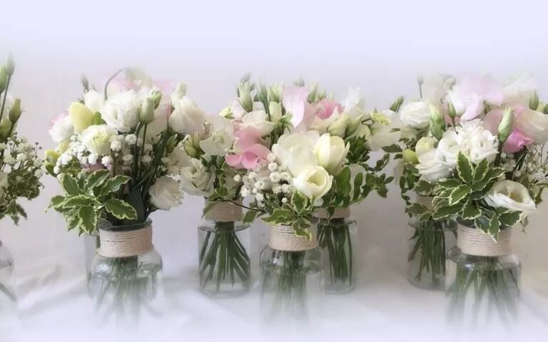 Bouquet de mariée, boutonnières, décoration de la voiture, de l'église, centres de table et livraison pour un mariage à votre image. Découvrez nos photos ici.